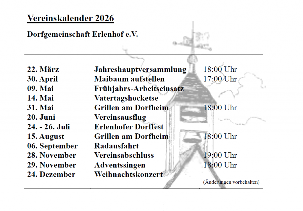 Terminkalender 2026 Das neue Jahr ist angebrochen und es stehen wieder reichlich Veranstaltungen an... Im neuen Terminkalender finden sich alle wichtigen Daten kurz zusammengefasst und auf den Punkt gebracht. Es wird versucht alle Termine so aktuell und genau wie möglich zu halten, alle Angaben sind jedoch unter Vorbehalt und können sich ändern!Im Zweifel sind genaue Uhrzeiten und Informationen zu erfragen! Zum Download Zum Download